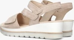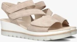 De 640.1 van GABOR is een sandaal van hoogwaardige kwaliteit die gemaakt is van beige suède. GABOR staat bekend om zijn kwaliteit en duurzaamheid en deze sandaal is daarop geen uitzondering! Het ontwerp van de sandaal is elegant en stijlvol, met een brede band over de voorvoet en twee dunne bandjes op de wreef. Deze bandjes zijn voorzien van klittenbandsluitingen, waardoor je de pasvorm gemakkelijk kunt aanpassen aan jouw voeten. De voering van de sandaal is gemaakt van een combinatie van leatherlook en leer, wat zorgt voor een comfortabel gevoel tijdens het dragen. De zool is 3 centimeter hoog onder de voorvoet en 5,5 centimeter hoog onder de hiel, wat helemaal bij dit model past. De zool is gemaakt van rubber, wat zorgt voor een goede grip op elke ondergrond. Deze sandaal is voor elke gelegenheid een optie! Of je nu naar een strandfeestje gaat of een dagje gaat winkelen in de stad, het kan allemaal!