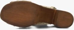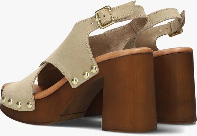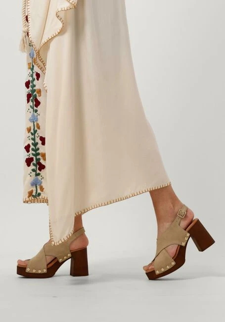 De elegante Italiaanse ontwerpen van het merk NOTRE-V zijn er voor de verfijnde vrouw die er graag effortless chic uit wil zien. Gemaakt van luxe materialen met subtiele accenten en een knipoog naar de laatste trends. Deze beige sandaal 8513 heeft een vrouwelijke en stoere look tegelijk door de slanke vormgeving, hoge blokhak met houtlook, de ronde neus en de goudkleurige bollstuds op de zijkant. Dit model is uitgevoerd in zacht suède met twee, gekruisde banden over de voorvoet en wreef. De bandjes zijn textiel gevoerd en het leren voetbed heeft een zacht, dempend voetbed voor optimaal comfort. Op de enkel bevindt zich een gespsluiting en de blokhak heeft een hoogte van ruim 9,5 centimeter. Het plateau onder de voorvoet is ruim 3 centimeter hoog. Met deze beauty kan je de plank niet misslaan!