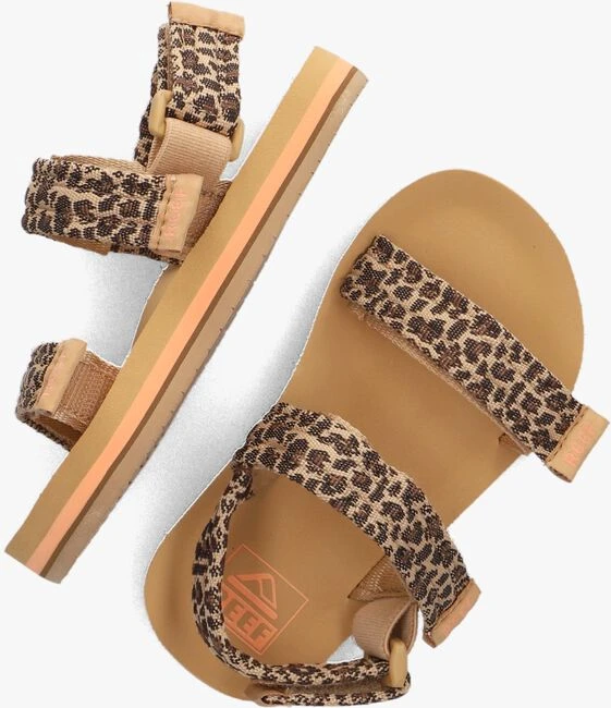 Comfortabel op pad gaat met deze sandalen AHI CONVERTIBLE uit de collectie van het merk REEF zeker lukken. Het bovenwerk is uitgevoerd in beige textiel met panterprint en alle bandjes zijn voorzien van een klittenbandsluiting waardoor je ‘m niet alleen snel en gemakkelijk aan- en uittrekt maar ook nog eens perfect passend maakt aan de voet. De binnenkant van de bandjes zijn gevoerd met zacht textiel voor een comfortabel gevoel en het beige rubberen voetbed zorgt voor een goede demping en een flexibele afwikkeling van de voet. Op het voetbed vind je een roze merkopdruk en ook in de zoolrand vind je een zalmroze accent. De loopzool is voorzien van een gripvast profiel waardoor je een goede grip en stabiliteit ervaart.