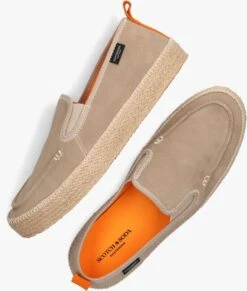 Van het Amsterdamse couture-merk SCOTCH & SODA is deze zomerse loafer IZOMI SLIP ON 1. Dit model bestaat uit beige suède en heeft opvallende stiksels, een opstaande neusnaad en een oranje, suède aantreklus op de hiel. Je stapt er gemakkelijk in-en uit dankzij de twee elastische inzetten naast de tong. De gevlochten zoolrand is voorzien van opvallend stikwerk en zorgt voor die extra zomerse look! De enkelrand is voorzien van katoen en bevat een textiel merklabeltje. De voering bestaat uit textiel en het voetbed is niet uitneembaar. De bruine loopzool met grof profiel is op elke ondergrond gripvast!