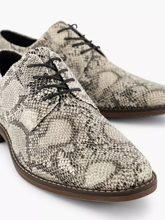 Beige Veterschoen Slangenprint