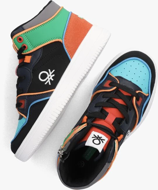 Het bekende merk BENETTON kenmerkt zich door de vrolijke kleurtjes. In de schoenencollectie zal je de kleuren en de combinaties hiervan dan ook zeker terugvinden. Hierdoor is de schoen niet alleen heel vrolijk maar zorgt hij ook voor een unieke uitstraling. Dit hoge sneaker model ROD is gemaakt van diverse panelen van leder- en suèdelook en neopreen textiel in de opvallende kleuren, blauw, rood, groen, oranje, zwart en grijs. Je trekt de schoen gemakkelijk aan-en uit dankzij de handige ritssluiting aan de binnenzijde van de sneaker en in combinatie met de veters maak je ze gemakkelijk op maat. De tong is gesierd met een textiel merklabel en de zijkant van de schoen beschikt over een geborduurd merklogo. Het binnenwerk heeft een mesh voering met een comfortabel uitneembaar voetbed. De rubberen zool is afgewerkt met een lichte structuur in de zoolrand en past perfect in het plaatje. De loopzool is voorzien van een gripvast profiel wat zorgt voor een goede grip en stabiliteit. Draag ze met trots en met al je mooie kleurrijke outfits!