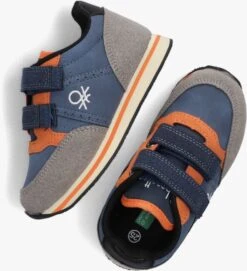 Het bekende merk BENETTON kenmerkt zich door de vrolijke kleurtjes. In de schoenencollectie zal je de kleuren en de combinaties hiervan dan ook zeker terugvinden. Hierdoor is de schoen niet alleen heel vrolijk maar zorgt hij ook voor een unieke uitstraling. Dit lage sneaker model WORD MX is gemaakt van blauw suèdelook in combinatie met textiel en opvallende panelen in een oranje en grijze kleur. Naast de opvallende kleurtjes valt ook de dubbele klittenbandsluiting met rubberen uiteindes met merkreliëf erop. Hierdoor zal je ook veel gemak ervaren met het aan- en uittrekken van de schoen. De gevoerde neopreen tong is gesierd met een merkopdruk en op de zijkant is merkborduursel te vinden. Het binnenwerk heeft een mesh voering met een comfortabel uitneembaar voetbed. De microrubberen tussenzool met oranje accentstreep zorgt voor een retro look en een optimale demping terwijl de loopzool zorgt voor een goede grip en stabiliteit. De grijze hielversteviging geeft nog meer steun waardoor geen uitdaging te groot is. Draag ze met trots en met al je mooie kleurrijke outfits!