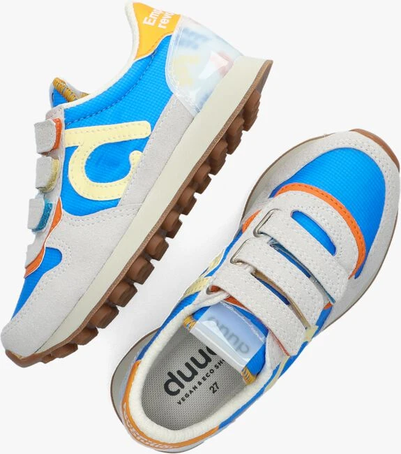 Van deze lage sneakers CALMA KID BOYS uit de collectie van het duurzame en trendy sneakermerk DUOO word je meteen helemaal vrolijk. De sneakers van dit merk worden ontworpen in Barcelona en zijn diervriendelijk en PETA approved vegan. Dit model bewijst ook gelijk dat vegan schoenen niet saai hoeven te zijn, zo heeft hij een gecombineerd bovenwerk van blauw ruitjes textiel met panelen van lichtgrijs vegan suèdelook en opvallende gele en oranje kleuraccenten over het gehele bovenwerk. Opvallend is de semitransparante hielinzet met meerdere vrolijke teksten en de oranje hielcap van vegan lederlook met de opdruk; “emathy revolution”. Leuk detail is het rubberen merklabel op de tong, het merkembleem op de zijkant en de driedubbele klittenbandsluiting met verborgen vrolijke kleuren, waarmee je dit model in een handomdraai aan en uit trekt. De voering is gemaakt van zacht textiel met een vast, dempend voetbed. De rubberen loopzool is afgewerkt met een gripvast noppenprofiel voor onwijs veel grip tijdens het rennen, spelen en klauwteren. Waar combineer jij deze vrolijke sneakers bij?