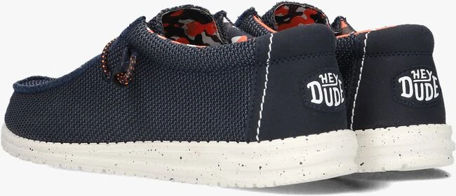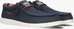 Als je opzoek bent naar moderne schoenen die licht is in gewicht en veel comfort biedt ben je bij schoenen van het merk HEYDUDE aan het juiste adres. Dit Italiaanse merk maakt al hun schoenen met veel passie, waarbij jou comfort centraal staat. Zo zijn alle schoenen licht in gewicht en hebben ze een aangename pasvorm. Deze donkerblauwe instapper WALLY SOX STICH is gemaakt van gevlochten katoen met stoere opstaande naden, merkpatch op de tong en een kleine vetersluiting. Extra tof is het donkerblauwe, suèdelook hielstukje met merkembleem en de zwarte met oranje veter. Het binnenwerk is gevoerd met katoen en beschikt over een uitneembaar voetbed. Dit model heeft een natuurlijke pasvorm en een hoog loopcomfort. De rubberen loopzool is afgewerkt met een gripvast profiel zodat jij met iedere stap een goede grip ervaart. Draag ze onder een nette pantalon of een casual jeans, deze schoenen zijn eindeloos te combineren met al jou zomerse outfits.