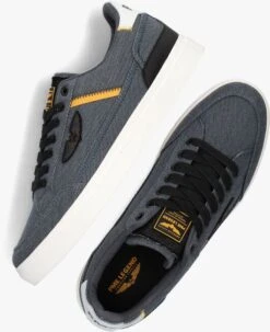 Deze blauwe, lage sneaker AZTECOR komt uit de collectie van het merk PME LEGEND. De buitenkant is gemaakt van gemêleerd textiel en is voorzien gele accenten. De tong is gemaakt van geruwd textiel met een zwart, rubber merklabel en de zijkant is gesierd met een gele bies en het welbekende vleugel embleem. Extra tof zijn de metalen veterringen, de witte hielcap met merkreliëf en de zwarte, rubberen hielstabilisator. De voering is gemaakt van ademend mesh textiel met een dempend vast voetbed. De rubberen zool heeft een casual en sportieve look met een fijn reliëf in de zoolrand en een goed profiel in de loopzool voor enorm veel grip. Combineer deze sneaker onder talloze outfits voor een smart casual look.