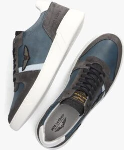 Deze blauwe, lage sneaker FREIGHTMAN van leer komt uit de mooie collectie van het merk PME LEGEND. Deze lichtgewicht schoen heeft een rijkelijk opgevulde enkelkraag voor extra ondersteuning en dankzij de textiel voering wordt vocht snel opgenomen en blijven je voeten droog. De sneaker bestaat uit blauw leer in combinatie met grijze, suède overlays en toffe details. Opvallend is het merklabel op de denim tong, de kenmerkende PME-vleugels op de zijkant, de lichtblauwe streep op de zijkant, de vluchtcoördinaten in reliëf en de witte hielcap. De rubberen kuipzool met goede grip heeft textuur op de zoolrand rondom de neus. De perfecte schoen voor die toffe stedentrip of het dagelijks leven!