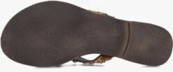 Bij het zien van deze mooie slippers krijg je toch spontaan de zomer in je bol? Deze bruine slipper 75.337 van het merk LAZAMANI is uniek, handgemaakt en heeft drie leren banden die chic zijn afgewerkt met zomerse kraaltjes en krassteentjes in de kleuren rood, bruin, wit en goud, waarvan er twee gekruist over elkaar heen lopen. Het voetbed is gemaakt van bruin suède, heeft een fijne demping en voelt heerlijk zacht aan. Laat de zon maar schijnen!