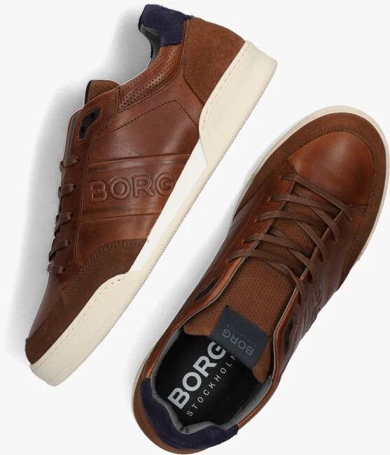 Deze basic, cognackleurige lage sneakers SL200 HEREN uit de collectie van het merk BJORN BORG zijn een perfecte aanvulling op je garderobe. Het bovenwerk is gemaakt van cognackleurig leer met verschillende suède overlays. Leuke details zijn de rubberen veterringen, het merklabel op de tong, de donkerblauwe, suède hielcap met merkreliëf en het oversized logo aan de buitenzijde van de sneaker. Het binnenwerk heeft een voering van textiel en leatherlook en beschikt over een uitneembaar voetbed met zachte demping. De rubberen zool heeft een sportief profiel en zorgt voor een goede grip en stabiliteit. Combineer dit model bij talloze outfits!