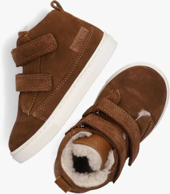 Sportief, stoer en comfy! Dat zijn de kenmerken van deze toffe hoge sneakers STEYN uit de collectie van TON & TON. De buitenkant is uitgevoerd in cognackleurig suède en de tong heeft een leren afwerking waar kleine rondjes in zijn gestanst. Dit zorgt voor een unieke en stoere look. Aan de hiel is een leren labeltje te vinden met merkopdruk. Het binnenwerk is voorzien van een heerlijk zachte faux fur voering en een uitneembaar lederen voetbed. Dankzij de klittenbandsluiting trek je het schoentje gemakkelijk aan en uit en hoef je ook niet iedere keer de veters te strikken, ideaal! De witte flexibele maar tegelijkertijd stevige rubberen zool zorgt voor die sportieve look en is voorzien van een gripvast profiel zodat je kleintje alle grip ervaart die hij nodig heeft tijdens alle avonturen buiten.
