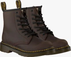 Je bent het coolste kind op het schoolplein met deze miniversie van de 1460 veterboots van Dr. Martens! Deze bruine boots 1460 SERENA J zijn gemaakt van leer en zijn niet alleen heel stoer en opvallend maar ook erg comfi én hip! De veterboots hebben de kenmerkende Dr. Martens accenten zoals de gegroefde zoolrand, de oversized hiellus, het gele stiksel en de metalen veterogen. Dit model heeft een handige ritssluiting om ze gemakkelijk aan- en uit te trekken en een heerlijk zachte en warme faux fur voering met vast voetbed. De schoen is gemaakt om lang mee te gaan en lekker te lopen en heeft daarom een extra flexibele verlijmde loopzool, zodat groeiende voeten niet worden belemmerd. Deze rubberen zool is olie- en vetbestendig en biedt een goede schuur- en slipweerstand. *Maatadvies: schoenen van Dr. Martens moeten eerst goed ingelopen worden, maar daarna wil je nooit meer zonder!