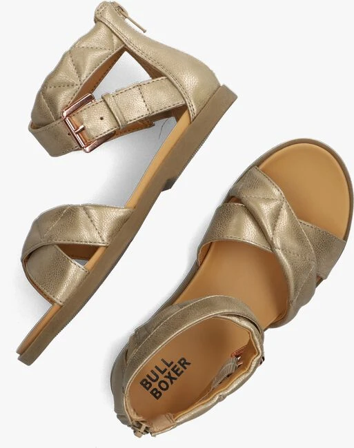 Met deze sandalen ALM016 van het merk BULLBOXER geef je niet alleen je garderobe een update maar geef je ook je zelfvertrouwen een flinke boost. Want met deze stoere sandalen volg jij helemaal de laatste trends! De buitenkant is gemaakt van goudkleurig leatherlook met een gewatteerd en doorgestikt bandje op de wreef en voorvoet en een bandje van glad leatherlook. Het binnenwerk is ook gemaakt van leatherlook en het voetbed voelt heel comfortabel aan. De rubberen zool heeft een grof profiel en zorgt voor veel grip. Je trekt ‘m super snel aan en uit door middel van de ritssluiting achterop de hiel. Combineer ‘m onder een jeans, shortje of jurkje!
