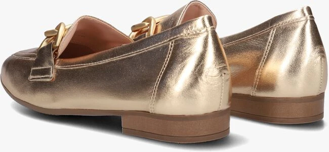 De elegante Italiaanse ontwerpen van het merk NOTRE-V zijn er voor de verfijnde vrouw die er graag effortless chic uit wil zien. Gemaakt van luxe materialen met subtiele accenten en een knipoog naar de laatste trends. Deze goudkleurige loafers 49206 zijn gemaakt van soepel en zacht leer en is voorzien van een schakel detail op de wreef. Dit model is leer gevoerd met een vast voetbed en een suède hielstuk voor extra comfort. De bruine, rubberen zool heeft een glad profiel met een gelaagd hakje van 1,5 centimeter hoog. Met deze mooie loafer geef je ieder outfit een chique en vrouwelijke uitstraling!