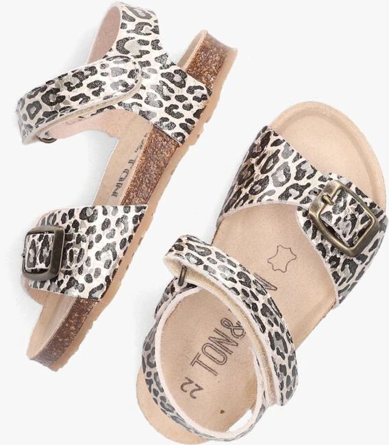 Deze zilveren ZOE sandalen van het merk TON & TON kunnen niet ontbreken tijdens de zomer dagen. De sandalen van dit merk worden met veel liefde en passie gemaakt en dat zie je terug in de kwaliteit! Het bovenwerk van leer heeft een trendy panterprint in combinatie met een zilverkleurige glitterfinish en een gespje op de voorvoet. Dankzij de klittenbandsluiting om de enkel trek je ze super snel aan en uit en pas je ‘m gemakkelijk aan naar je voet. Het leren binnenwerk zorgt voor een comfortabel gevoel en de kurken tussenzool biedt veel demping. De loopzool met gripvast profiel zorgt voor een goede grip en stabilitiet. Wat deze sandaaltjes extra leuk maakt is het all over bloementjes motief op de onderkant van de rubberen loopzool. Met deze mooie sandalen ben je helemaal klaar voor al die dagen vol zonneschijn!