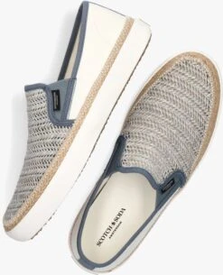 Van het Amsterdamse couture-merk SCOTCH & SODA is deze zomerse loafer IZOMI SLIP ON. Dit model heeft een voorpand van geperforeerd, gevlochten touw met een hielstuk van wit textiel en heeft blauwe accenten. Je stapt er gemakkelijk in-en uit dankzij de twee elastische inzetten naast de tong. De gevlochten zoolrand is voorzien van opvallend stikwerk en het zwarte merklabeltje is te vinden aan de zijkant. De voering bestaat uit textiel en het voetbed is niet uitneembaar. De rubberen zool maakt dit model net wat stoerder en heeft een zwart merkembleem op de hiel. De bruine loopzool met grof profiel is op elke ondergrond gripvast!