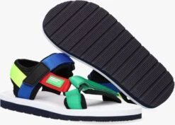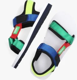 Het bekende merk BENETTON kenmerkt zich door de vrolijke kleurtjes. In de schoenencollectie zal je de kleuren en de combinaties hiervan dan ook zeker terugvinden. Hierdoor is de sandaal niet alleen heel vrolijk maar zorgt hij ook voor een unieke uitstraling. Dit model REEF MULTI is gemaakt van neopreen met textiele bandjes in vrolijke kleuren. Zo heeft de hiel een neongeel bandje, de wreef een blauw bandje, de voorvoet een groen bandje en zit er op de zijkant een rood bandje met een groene rubberen tag die merkreliëf bevat. Het sandaaltje is gemakkelijk aan en uit te doen doen de klittenbandsluiting op de wreef en voorvoet. De sandaal heeft een micro rubberen tussenzool waardoor hij een goede demping heeft en door de extreme flexibiliteit zorgt dit sandaaltje voor een goede afwikkeling van de voet. De zwarte rubberen zool heeft een fijn profiel met groeven om een goede stabiliteit en grip te bieden tijdens het spelen. Draag ze met trots en met al je mooie kleurrijke outfits!