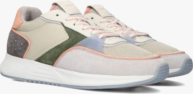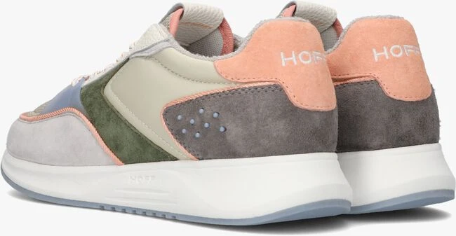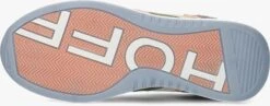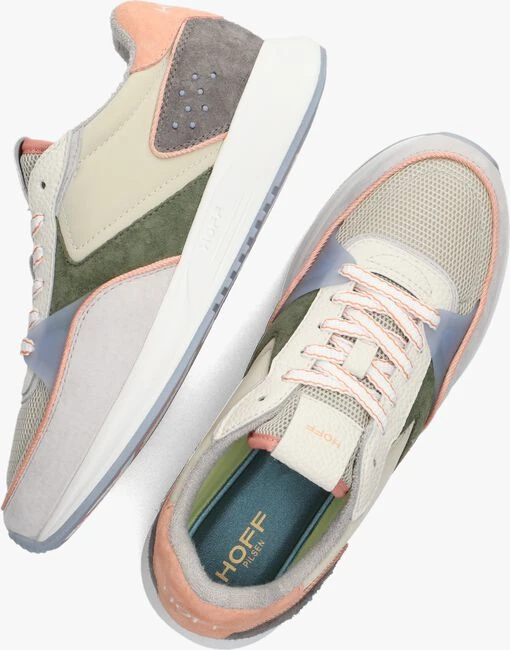 Het merk THE HOFF BRAND heeft hart voor Europa en het Middellands zeegebied en daar halen zij dan ook de inspiratie vandaan. Originele en zelfverzekerde vertrouwde modellen en producten, verbondenheid met de natuur en de oceaan en gericht op vreugdevolle mensen die qualitytime met familie en vrienden belangrijk vinden. De ontwerpen worden met veel zorg en aandacht gemaakt, een tikkeltje eigenwijs maar net niet rebels. Deze lage sneaker heeft beige nylon op de zijkant, mesh textiel op de tong en neus en suède panelen in de kleuren, grijs, roze en groen. Opvallend zijn de roze katoenen randjes, de leren witte veterklep, de witte veters met roze details, het rubberen veterlusje en de rubberen bolletjes aan de zijkant. Het merkembleem is te vinden op de tong, hiel en zoolrand en door de gewatteerde enkelkraag ervaar je extra comfort. De voering is gemaakt van grijs badstof en het dempende voetbed is uitneembaar. De rubberen, witte zool is 2 centimeter onder de voorvoet en loopt naar achteren op tot 4 centimeter hoogte. De blauwe met roze loopzool heeft een gripvast profiel en is voorzien van een oversized wit merkembleem. Draag dit opvallende model bij een casual outfit!