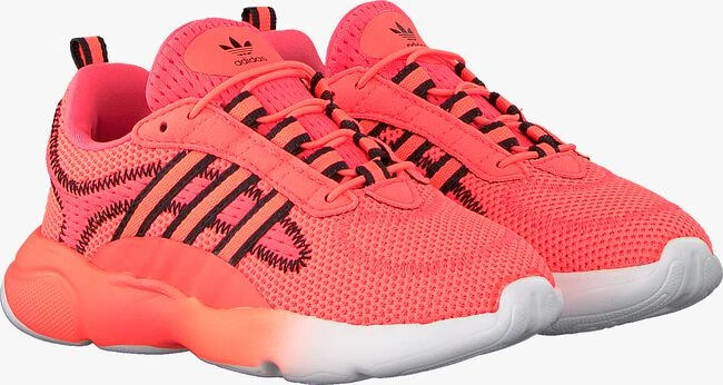Deze neonoranje chunky sneaker HAIWEE EL I van het merk ADIDAS geeft jouw kleine een sportieve vintage stijl en ultiem comfort! Dit model is geïnspireerd op de retro runners uit de archieven van ADIDAS en heeft een chunky silhouet en opvallende kleuren. Het bovenwerk van mesh is voorzien van opzichtige stiksels en sportieve zwarte banden op de veterklep en als aantreklus. De tong en hiel zijn voorzien van een patch met Trefoil-logo. De uitbundig vormgegeven zool loopt naar achteren toe op en is ultralicht van gewicht. De binnenvoering is van textiel en heeft een uitneembaar voetbed met prettige demping. Door de oversized zool met Torsion System voor middenvoetstabiliteit heeft de sneaker een goede grip en het kleurverloop in de zoolrand geeft een speels effect. Durf jij ‘m aan te doen bij je kleintje?