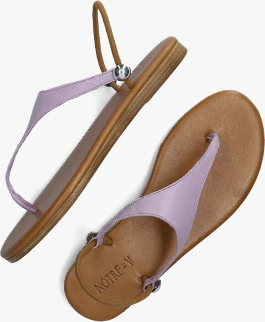 De elegante, Italiaanse ontwerpen van het merk NOTRE-V zijn er voor de verfijnde vrouw die er graag effortless chic uit wil zien. Gemaakt van luxe materialen met subtiele accenten en een knipoog naar de laatste trends. Deze lila sandalen 444009 hebben een leren bovenwerk en een elastiek om de hiel, waardoor de schoen altijd goed blijft zitten en je hem gemakkelijk aan- en uittrekt. Het zilverkleurige detail dat het bovenwerk en elastiek verbindt, geeft de schoen een elegante touch. De sandaal heeft een leren voetbed met een opvulling voor optimaal comfort en een flexibele, rubberen loopzool met een fijn profiel voor voldoende grip. De hoogte van de zool loopt op van ongeveer een halve centimeter onder de voorvoet tot 1,5 centimeter onder de hiel. Combineer dit item onder al jouw zomerjurkjes of draag deze sandalen onder je favoriete jeans.
