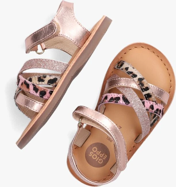 Geïnspireerd op de mediterrane stijl geeft het merk Gioseppo zijn eigen draai aan deze sandaaltjes. Van dit model WARREN wordt je helemaal blij! De buitenkant is gemaakt van metallic roze leer en heeft een smal goud enkelbandje en over de voorvoet lopen meerdere bandjes, zo is er één uitgevoerd met glitters twee hebben er ponyhair, de ene is in het roze uitgevoerd en de andere in een bruine kleur met panterprint en één heeft een metallic roze band. Door middel van de klittenbandsluiting op de enkel maak je ‘m goed passend aan de voet en trek je ‘m gemakkelijk aan en uit. De leren voering en het voetbed met dempende schuimlaag biedt een goede demping en veel comfort. Het rubberen loopzooltje zorgt voor een goede grip en stevigheid en is vrolijk versierd met golfjes. Met deze sandaaltjes heb je altijd een goede dag!