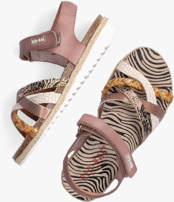Bij het zien van deze sandalen 19274 van het merk RED-RAG krijgen wij meteen zin in die heerlijke zomerse dagen! Het bandje om de enkel is gemaakt van oudroze leer en de kruislingse bandjes om de voet hebben diverse afwerkingen. Zo is er een bandje gemaakt van jute met een mooi vlechtwerk, een roze metallic bandje met panterprint, een twee bandjes met verschillende structuren. Extra leuk is het suède voetbed met zebraprint en het jute accent in de zool. Het binnenwerk heeft een suède afwerking en zorgt voor een comfortabel gevoel. De witte rubberen zool zorgt voor een sportieve look en een gripvast profiel.