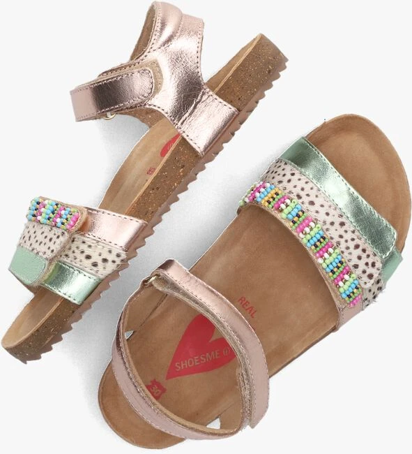 Op dit lieve sandaaltje zie je je dochtertje toch al uren spelen? Dit comfortabele en trendy model IC23S004 van het merk SHOESME ziet er té gek uit en heeft ook nog eens een heel fijn voetbed van licht gevoerd suède met een kurkentussenzool die veel demping biedt. Het sandaaltje is uitgevoerd in rosegoud leer en heeft mooie details op de bandjes zoals het beige ponyhair, het groene metallic leer en de gekleurde kraaltjes. Met de klittenbandsluitingen pas je ‘m perfect aan naar het voetje van jouw kind en wordt aan- en uit trekken een makkie. De voering is gemaakt van zacht suède en in combinatie met de rubberen loopzool die heerlijk mee buigt met het voetje van jouw kleine meid zorgt dit voor een goede afwikkeling van de voet. Het fijne profiel in de loopzool geeft een goede grip voor al jullie gezellige uitjes naar de stad of op de boulevard tijdens die heerlijke vakantie.