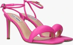 Hoe leuk zijn deze zwarte strappy sandalen ENTICE van het merk Steve Madden! Het bovenwerk is gemaakt van roze leatherlook met een heerlijk gevoerd bandje op de wreef en een smal enkelbandje met gespsluiting om hem goed passend te maken naar jouw voet. Extra leuk is de carréneus in combinatie met de vrouwelijke naaldhak van ruim 9 centimeter hoog. Het binnenwerk is gemaakt van gevoerd leatherlook voor een aangename demping en comfort de gehele dag door. De zool is van rubber en heeft een fijn lijntjes profiel onder de voorvoet voor genoeg grip. Draag ze bij een toffe jeans of een mooie jurk en steel de show!