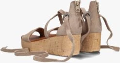 Niets is fijner dan van de zomer te genieten met comfortabele sandalen met een mooie vrouwelijke look aan je voeten! Deze taupekleurige sandaal 722007 met kurken platformzool van het merk OMODA is uitgevoerd in zacht suède en heeft een brede band op de voorvoet, een dicht hielstuk met ritssluiting en een lange suède veter met metalen ringen. Met deze veter kun je de sandaal sierlijk om de enkel knopen en blijft hij goed om de voet zitten. Het binnenwerk is van leer en het opgevulde voetbed biedt demping, terwijl de kurken platformzool extra lengte en vrouwelijkheid creëert. Combineer deze sandalen met je favoriete jeans of onder dat leuke rokje of jurkje. Dit model heeft een hakhoogte van 6 centimeter en een plateau onder de voorvoet van bijna 3 centimeter.