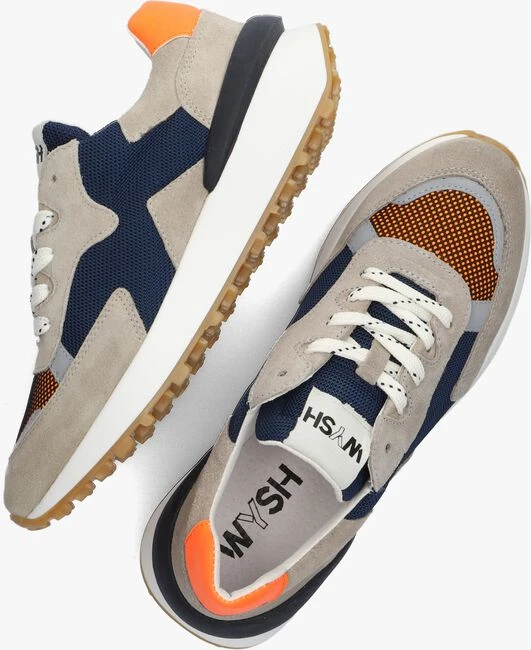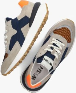 Hét nieuwe schoenenmerk voor coole kids, WYSH, staat voor Wear Your SHoes en is voor eigenwijze types die hun eigen stijl volgen. Oftewel, doe je ding! Draag op ieder moment de schoenen die jij wilt, op iedere manier die jij tof vindt. De trendy modellen zijn uitgevoerd in hoogwaardige materialen en zijn met zorg ontworpen voor snel groeiende voeten. Deze stoere sneaker BRADLEY is gemaakt van taupekleurig suède met donkerblauw textiel en opvallende neon oranje accenten. Leuke details zijn ook de gemêleerde veters, de reflecterende panelen langs de neus, de zwarte hielstabilisator en het merklabel op de tong. Het binnenwerk is van leer en heeft een uitneembaar voetbed. De enkelkraag en tong zijn opgevuld voor extra comfort en het noppenprofiel van de loopzool zorgt voor veel grip. Een comfortabele sneaker voor ieder avontuur!