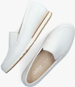 Deze witte instapper 414 met sportieve zool komt uit de Comfort collectie van het merk Gabor. Comfort schoenen hebben meer volume bij de tenen en bij de bal van de voet en bieden voor iedere voet de noodzakelijke ruimte. Daarnaast zorgt deze instapper ervoor dat je de dag comfortabel doorkomt dankzij het zachte leren bovenwerk, het textiel binnenwerk en het uitneembare leren Optifit-voetbed met een dempende werking zodat de gewrichten worden ontzien. De microrubberen zool is uitzonderlijk flexibel door de diepe groeven in de loopzool en de beige subtiele verhoging met karamelbruine accentstreep is 2,5 centimeter hoog. Dit model heeft een normale G-wijdte en dankzij de elastische inzetten op de wreef heeft de instapper een ruime instap en een prettig loopcomfort. Creëer eenvoudig een casual-sporty look onder iedere outfit met deze comfortabele schoen!