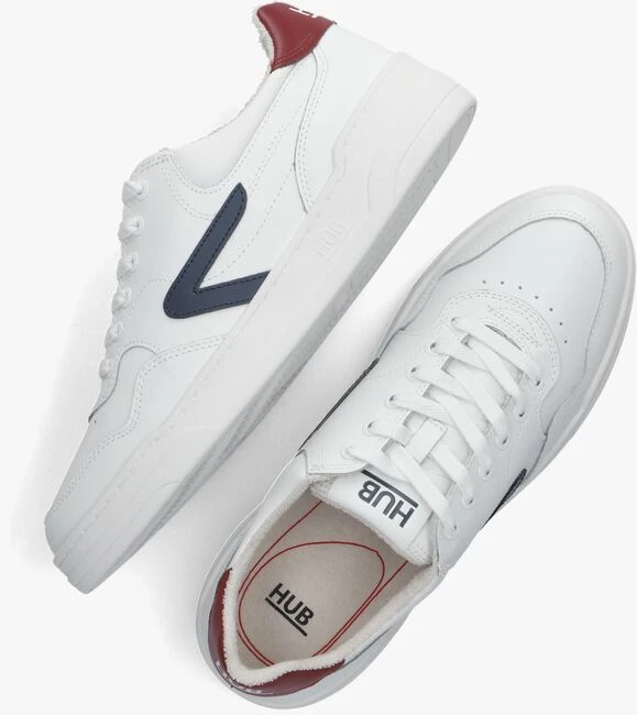 De COURT-Z MEN sneaker uit de collectie van het merk HUB is op basketball-schoenen geïnspireerd en heeft een uniek ontwerp en een hoog comfort. Deze witte sneaker heeft een bovenwerk van leer met verschillende overlays en heeft opvallende accenten zoals de grove perforaties op de neus voor een goed ademend vermogen en een witte rubberen kuipzool. Deze zool is niet alleen heel flexibel maar ook ultralicht van gewicht en voorzien van een reliëf merkopdruk. De sneaker heeft toffe details zoals het merklabel op de tong, het donkerblauwe logo op de zijkant en het witte merkreliëf op de rode hielcap. Het binnenwerk is gemaakt van vocht absorberend badstof en heeft een uitneembare voetbed met gelvulling zorgt gegarandeerd voor het gevoel dat je op kussentjes loopt. Daarnaast heeft het voetbed het zogenaamde Air Flow-ventilatiesysteem zodat jouw voeten altijd droog en fris blijven. En uiteraard zorgt het profiel in de zool voor een uitstekende grip. Wordt dit jouw nieuwe favoriete sneaker?