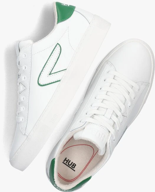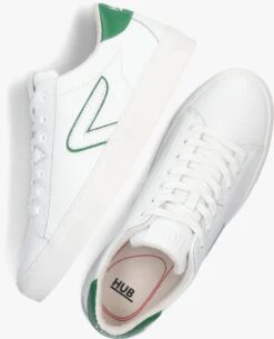 Deze witte sneaker HOOK-Z uit de collectie van het merk HUB is zo’n sneaker die je goed kunt gebruiken om aan je eigen schoenencollectie toe te voegen om op een unieke manier mee te doen aan de laatste trends. Dit leren model heeft een coole look en een uniek detail op de zijkant is de vernieuwde iconische HUB-Z in wit leer met een groene bies. De witte rubberen zool is niet alleen heel flexibel maar ook ultralicht van gewicht en voorzien van stootranden op de voor- en achterkant. Op de tong is een leer label met merkopdruk te vinden en de groene hielkap is voorzien van een witte merkopdruk. Het binnenwerk is gemaakt van vochtabsorberend badstof en beschikt over een uitneembaar voetbed met gelvulling die gegarandeerd zorgt voor het gevoel dat je op kussentjes loopt. Daarnaast heeft het voetbed het zogenaamde Air Flow-ventilatiesysteem zodat jouw voeten altijd droog en fris blijven. En uiteraard zorgt het profiel in de zool voor een uitstekende grip. Wordt dit jouw nieuwe favoriete sneaker?