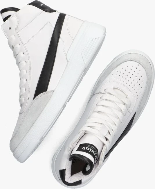 Deze hoge sneaker DASH SNEAKERS van NIK & NIK bestaat uit wit leer met een suède, grijze neusrand en zwarte accenten. Opvallend is de hielcap met tekst, het textiel merkembleem op de tong, de perforaties op de neus en de zwarte streep op de buitenzijde. De enkelkraag is gewatteerd voor een extra fijn comfort en de voering bestaat uit textiel. De rubberen zool met reliëf heeft een gripvast profiel en combineer dit model bij talloze outfits!