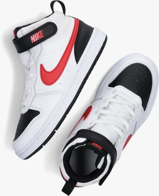 Deze hoge sneaker COURT BOROUGH MID 2 (GS) van NIKE is niet alleen heel populair maar ook nog eens supercomfortabel. De bovenkant heeft een unieke look door de perforaties op de neus, de klittenbandsluiting bovenaan de vetersluiting en de mesh enkelkraag. Dit model is uitgevoerd in wit leer met rode accenten en heeft een zwarte neus, hielcap en klittenband sluiting. De sneaker is gevoerd met mesh en heeft een vast voetbed. De tong van mesh zorgt voor een goede ventilatie en de witte rubberen kuipzool met zwarte loopzool biedt comfort en demping. Draag hem bij je favoriete outfits en je bent ready to go!