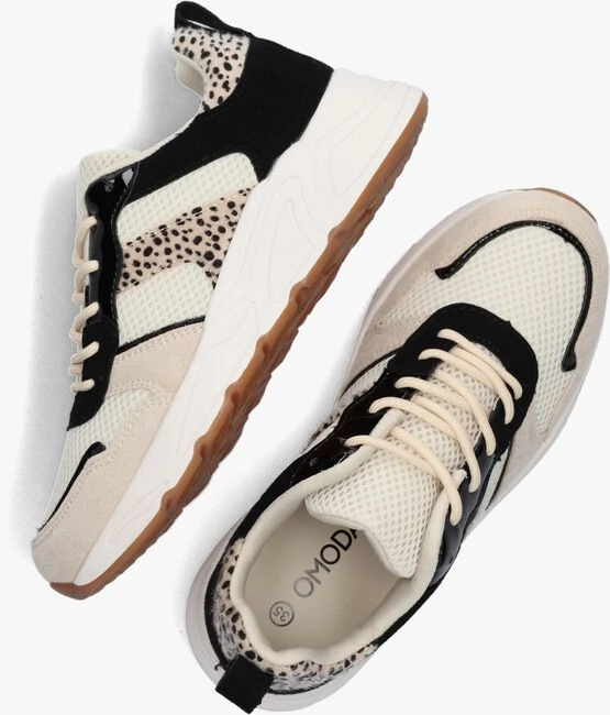 Deze lage sneaker ZOË van OMODA is gemaakt van beige mesh textiel en heeft suèdelook panelen in de kleuren beige en zwart. Andere opvallende details zijn de leatherlook lakzwarte details bij de veterklep en voorvoet, het ponyhair op de hielcap en zijkant, de veters en de aantreklus op de hiel. De voering is gemaakt van textiel en heeft een vast voetbed met dempende laag. De oplopende zool van rubber heeft een lijntjesreliëf en de bruine loopzool heeft een gripvast profiel!