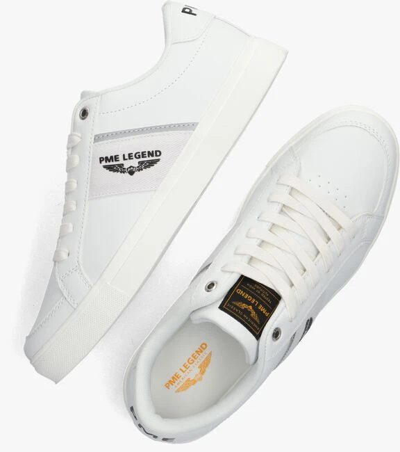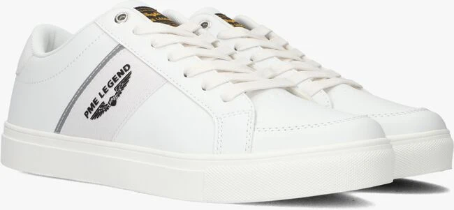 Deze witte lage sneaker ECLIPSE van wit lederlook komt uit de mooie collectie van het merk PME LEGEND. Deze lichtgewicht schoen heeft een rijkelijk opgevulde enkelkraag voor extra ondersteuning en dankzij de textiele voering wordt vocht snel opgenomen en blijven je voeten droog. Het binnenwerk is van mesh en heeft een uitneembaar, dempend voetbed. Opvallend is het textiele merklabel op de tong, de witte spijkerstof met reflecterende bies op de zijkant met zwart merkopdruk en de witte hielcap met een zwart merkopdruk en denim tape. De rubberen kuipzool met goede grip heeft textuur op de zoolrand rondom de neus en op de hiel. De perfecte schoen voor die toffe stedentrip of het dagelijks leven!