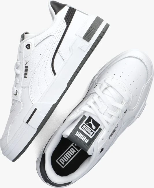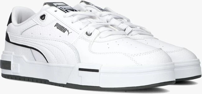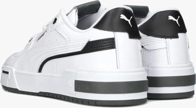 Geef je outfit een sportieve touch met deze witte, lage sneaker CA PRO GLITCH ITH van het merk PUMA. Dit model is gemaakt van gestructureerd leer met zwarte accenten en heeft kenmerkende PUMA-details, zoals de PUMA-Formstrip op de zijkant, het grijze logo op de zijkant, het grijze merklabel op de tong, het merkreliëf op de zoolrand en het witte merkopdruk op de hiel. De plateauzool van 4,5 centimeter hoog maakt dit plaatje compleet en geeft dit item een stoere look. Het binnenwerk is gemaakt van mesh en het dempende voetbed is uitneembaar. Het grove profiel van de loopzool zorgt voor voldoende grip en stabiliteit. Draag deze sneakers onder een jeans voor een casual look.