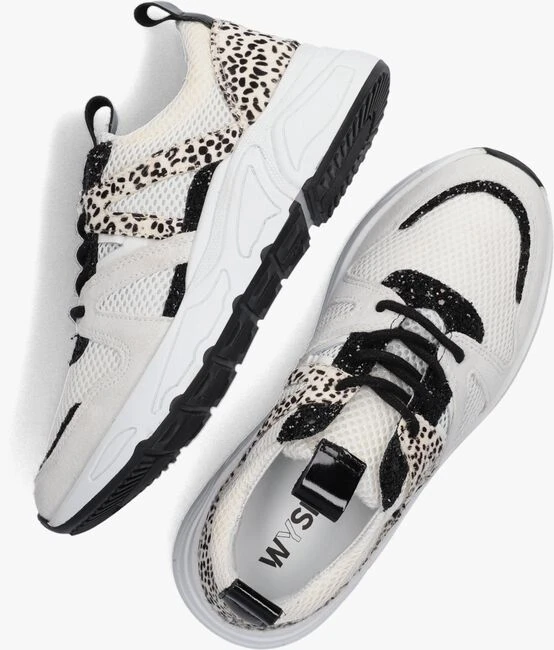Hét nieuwe schoenenmerk voor coole kids, WYSH, staat voor Wear Your SHoes en is voor eigenwijze types die hun eigen stijl volgen. Oftewel, doe je ding! Draag op ieder moment de schoenen die jij wil, op iedere manier die jij tof vindt. De trendy modellen zijn uitgevoerd in hoogwaardige materialen en zijn met zorg ontworpen voor snel groeiende voeten. Dit lage sneaker model CAROCEL is uitgevoerd in off white mesh textiel en beschikt over panelen van beige suède, toffe zwarte details en versieringen van ponyhair met pixelprint. Extra leuk zijn de lak zwarte aantreklusjes op de tong en hiel, de verstevigende hielcap van ponyhair en de veterklep van zwart glitter textiel die ook rondom de neus en op de zijkant zit. Het binnenwerk heeft een leren voering met een vast voetbed. De rubberen zool met stoere vormen zorgt voor een coole look en het gripvaste profiel geeft je bij iedere uitdaging een goede stabiliteit en grip. Durf eigenwijs te zijn met WYSH!