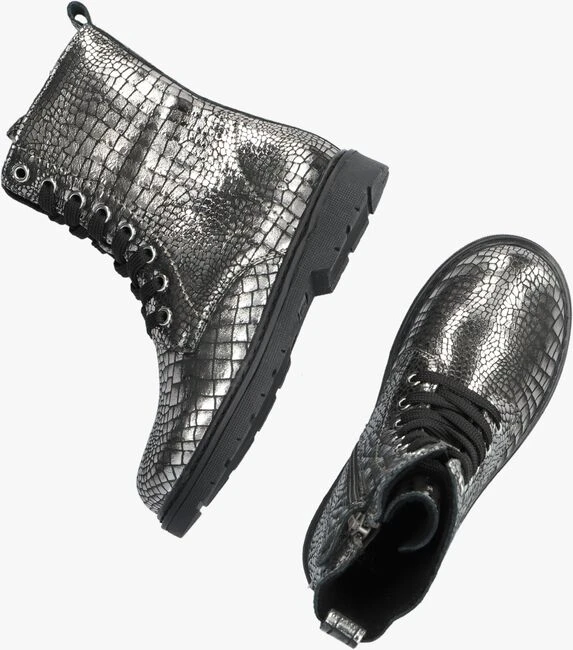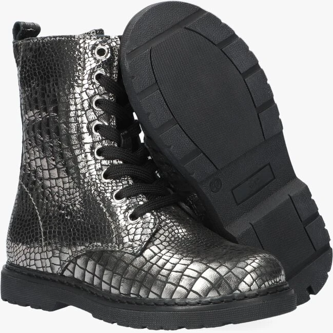 Deze stoere veterboot B009048 is van het Belgische merk APPLES & PEARS. De schoenen van dit merk worden met veel liefde en passie gemaakt, hebben een Italiaans design en worden volledig met de hand gemaakt in India. En dat zie je terug in de kwaliteit! De boot is uitgevoerd in zwart suède met een opvallende zilverkleurige kroko print finish. De voering en het uitneembare voetbed is gemaakt van leer in combinatie met textiel en de rubberen flexibele zool heeft een medium grof profiel en zorgt voor veel grip en stabiliteit. Je trekt ze gemakkelijk aan en uit door de ritssluiting aan de zijkant van de laars. Met elk paar Apples & Pears die je koopt ondersteun je een opvangtehuis voor wezen en verstotenen in India, dat voelt extra goed. Dit model heeft een smalle pasvorm.