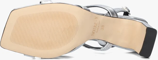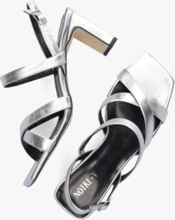 De elegante Italiaanse ontwerpen van het merk NOTRE-V zijn er voor de verfijnde vrouw die er graag effortless chic uit wil zien. Gemaakt van luxe materialen met subtiele accenten en een knipoog naar de laatste trends. Deze zilverkleurige sandaal 12371 heeft een super vrouwelijke en elegante look dankzij het slank vormgegeven model met brede banden, de carré neus en het metalen gespje aan de hiel. Dit model is uitgevoerd in hoogwaardig leer met een leren voering en een dempend voetbed voor extra comfort. Leuk detail is de met leren bekleedde, halve blokhak van 8 centimeter hoog met een kunststof haktip. De loopzool is uitgevoerd in flexibel rubber en is gripvast. Met deze beauty kan je de plank niet misslaan!