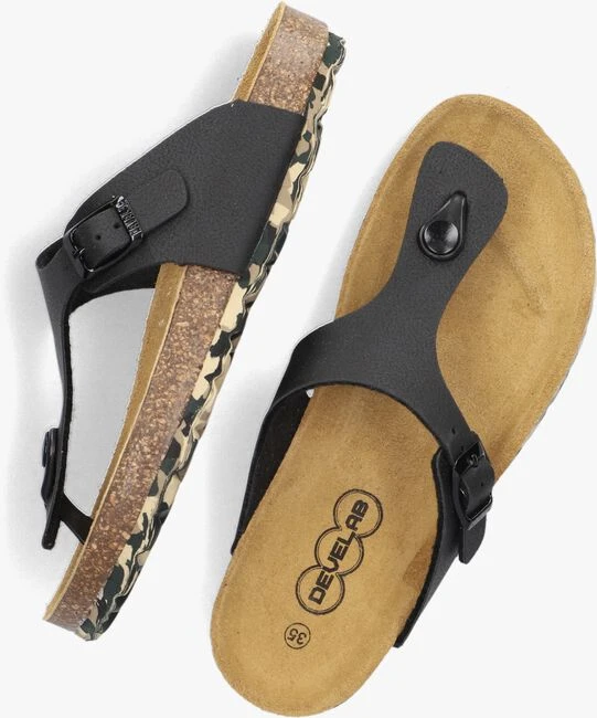 Het Nederlandse merk Develab maakt schoenen speciaal voor kinderen die houden van buitenspelen, rennen en ravotten. De schoenen zijn stevig en hebben een goede kwaliteit. Ook dit model slipper 48281 in zwart leatherlook is een ideaal model en heeft een handige gespsluiting om hem net wat strakker of losser te kunnen dragen. De buitenkant en voering is gemaakt van leer en het voorgevormde voetbed met suède afwerking zorgt voor een fijn draagcomfort. De kurken tussenzool gaat zich naar verloop van tijd vormen naar de voet en de loopzool is gemaakt van rubber met een camouflage look en grof profiel.