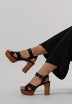 Deze toffe sandalen MALOU 3 komen uit de collectie van het merk GOOSECRAFT. Dit zwarte exemplaar van leer heeft over de voorvoet twee gekruiste banden en het enkelbandje is voorzien van een metalen gespsluiting, zodat de sandaal goed om je voet blijft zitten tijdens het lopen. Met deze sandaal laat jij je vrouwelijke en stoere look zien, dit komt door de slanke vormgeving, de hoge blokhak, het plateau onder de voorvoet en het mooie enkelbandje. De bandjes zijn gevoerd met soepel leer en de zool is afgewerkt met een leren toplaag en bevat een fijne demping, zodat jij het lang kunt volhouden op deze beauty’s. De houtlook zool heeft een hakhoogte van ruim 10 centimeter en het plateau onder de voorvoet is 3,5 centimeter hoog. Draag ‘m onder een prachtige jurk of leuke skinny, want met deze sandalen kan je de plank niet misslaan!