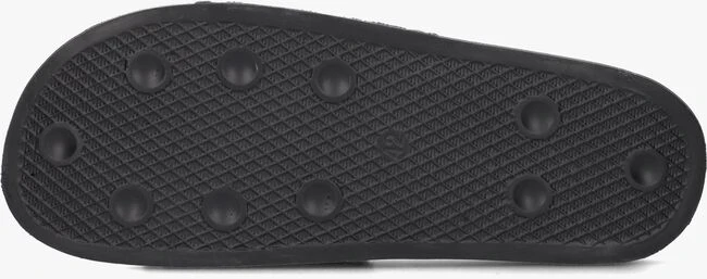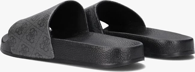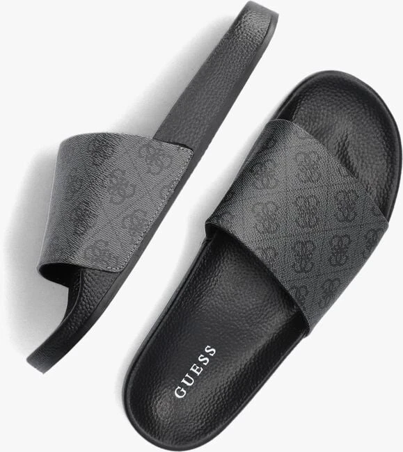 Een comfortabele zwarte badslipper COLICO van het stoere merk GUESS. Dit sportieve model is volledig uitgevoerd in rubber en heeft stijlvolle details. Zo is de brede grijze band over de voorvoet gesierd met de welbekende Guess merkopdrukken die hem een luxe touch geeft. Het zwarte voetbed is licht voorgevormd en voorzien van een grove structuur. Het stevige profiel in de loopzool geeft je een goede grip en voorkomt uitglijders bij het zwembad. Ga relaxt op stap met deze comfortabele badslippers!