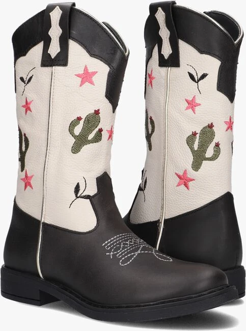 Deze stoere cowboylaars BEA van het merk JOCHIE & FREAKS maakt jouw outfit helemaal af! De laars bestaat uit zwart leer met een schacht van roomwit, gestructureerd leer. Deze opvallende laars kenmerkt zich door de cowboy-accenten, zo zie je de aantreklus aan de buitenzijde, het grijze stikwerk op de wreef, de goudkleurige bies en de verschillende patronen op de schacht, zoals een cactus, een ster en een bloem. Door de rits aan de binnenzijde kan je de laars gemakkelijk aan en uit trekken. De binnenkant is gemaakt van leer en heeft een zacht uitneembaar voetbed. De rubberen zool is 2,5 centimeter hoog. De schachthoogte is 22 centimeter. Combineer ‘m met jouw lievelingsjurk!