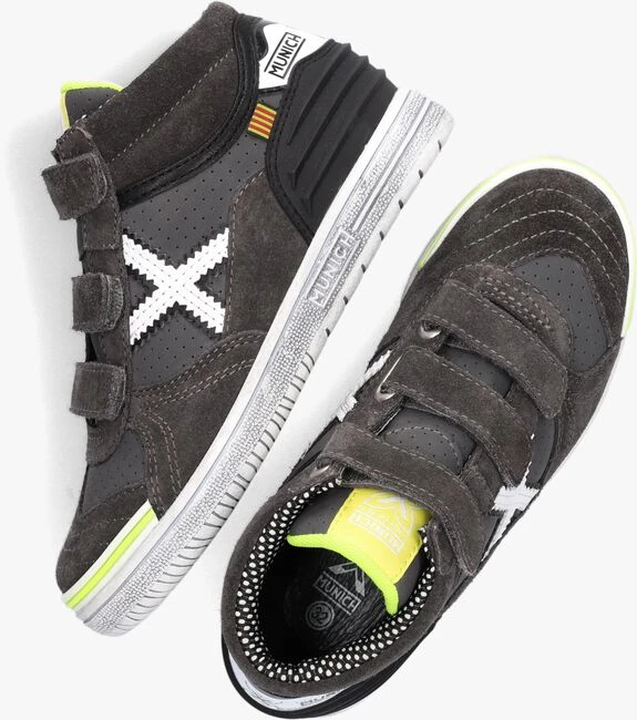 De schoenen van MUNICH kenmerken zich door de vele kleuren, materialen, structuren, prints en combinaties. Elke schoen van dit merk heeft daardoor een uniek en speels uiterlijk wat veel kinderen aantrekt. De buitenkant van deze hoge sneaker G3 BOOT VELCRO is gemaakt van grijs suède en heeft een opvallend geel textiel merklabel aan de tong en een stoere perforaties over het gehele bovenwerk. De neus is voorzien van een extra sterkte stootrand voor optimale bescherming van de neus. Opvallend zijn de witte en neon gele accenten en de kenmerkende X aan de zijkant van de schoen. De voering is gemaakt van mesh en het voetbed is uitneembaar. Dankzij de klittenbandsluiting trek je ‘m gemakkelijk aan en uit en door het gripvaste profiel onder de rubberen zool ervaar je veel grip en stabiliteit bij alle activiteiten.
