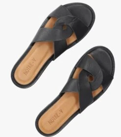 De elegante Italiaanse ontwerpen van het merk NOTRE-V zijn er voor de verfijnde vrouw die er graag effortless chic uit wil zien. De producten zijn gemaakt van luxe materialen met subtiele accenten en een knipoog naar de laatste trends. Met deze toffe 10160 slipper maak jij je outfit af en zorg je voor een moderne touch. Het bovenwerk is uitgevoerd in zwart leer die bestaat uit twee halve ‘O’ bandjes die samen één geheel vormen. De voering is gemaakt van licht gevoerd leer met een vast voetbed. De zool is van rubber met een klein hakje van ongeveer 1,5 centimeter en fijne groeven die zorgt voor goede grip. Combineer deze schoen onder je favoriete jeans of onder een leuk rokjes of jurkje!