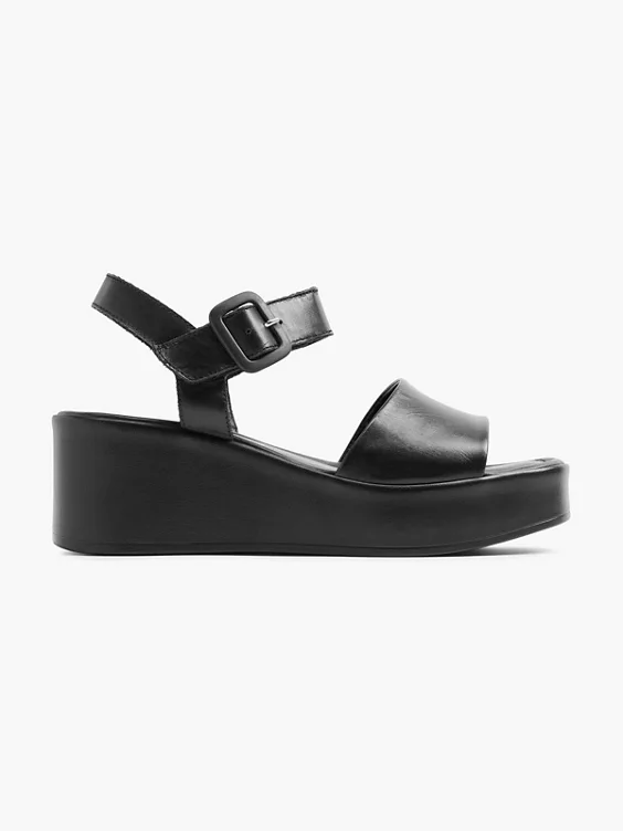 Zwarte Platform Leren Sandaal