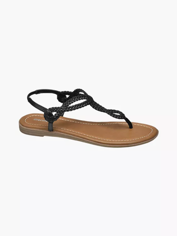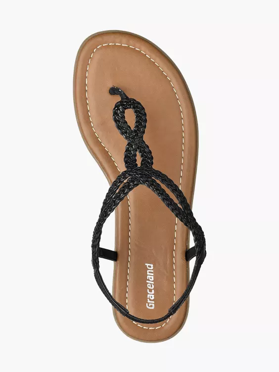 - Dames sandaal met geweven bandjes en elastiek bij de hiel