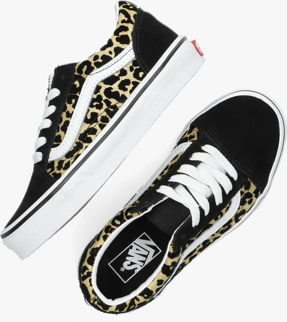 Deze populaire lage sneaker UY OLD SKOOL is één van de bekendste modellen van het merk Vans. Deze zwarte skateschoen is uitgevoerd in suède met goudkleurige dierenprint en heeft een voering van textiel met een vast voetbed. Opvallende details zijn de bekende leren lijn op de zijkant en het merklabel op de hiel. De neus is verstevigd met een stootrand en geeft bescherming tegen slijtage. De gevoerde enkelkraag biedt ondersteuning en flexibiliteit en de rubberen zool met wafelprofiel biedt grip bij het lopen.