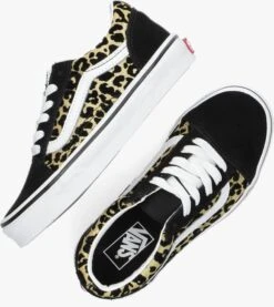 Deze populaire lage sneaker UY OLD SKOOL is één van de bekendste modellen van het merk Vans. Deze zwarte skateschoen is uitgevoerd in suède en canvas en heeft een voering van textiel met een vast voetbed. Opvallende details zijn de bekende leren lijnen op de zijkant, het merklabel op de hiel en het oversized merkembleem van leer in opvallende rode, oranje en een gele kleur. De neus is verstevigd met een stootrand en geeft bescherming tegen slijtage. De gevoerde enkelkraag biedt ondersteuning en flexibiliteit en de rubberen zool met wafelprofiel biedt grip bij het lopen.